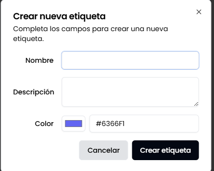 1. Ve al menú Configuración > Etiquetas y haz clic en el botón + para añadir una nueva etiqueta.
